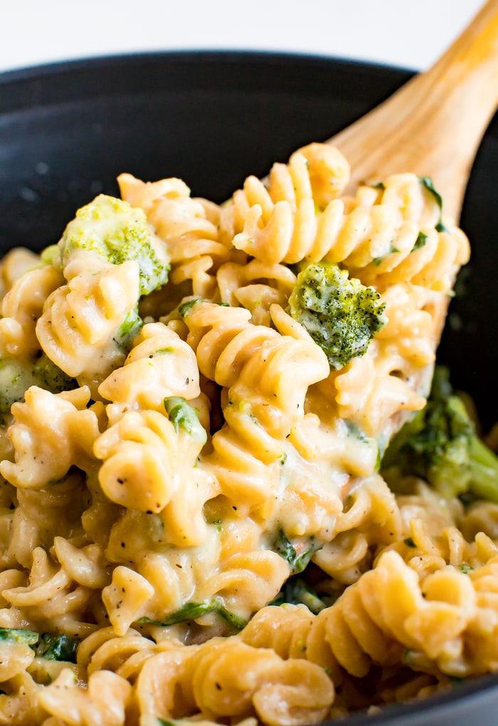 ¡Está aquí! Una receta saludable de macarrones con queso rica en proteínas, brócoli y espinacas. Perfecto como una comida completa y una forma disimulada de hacer que tus hijos coman más verduras.