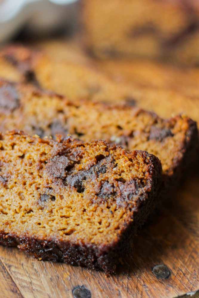 Afortunadamente para nosotros, ¡ambos ingredientes están en este pan de calabaza paleo! La base del pan está hecha con harina de coco y harina de almendras. Y luego hay trozos de chocolate paleo esparcidos por todo el lugar. Cuando comes un bocado de pan suave y decadente pegajoso con chispas de chocolate (también conocido como cada bocado), es mejor.