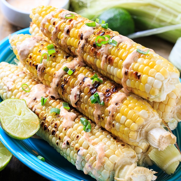 Elote asado con crema de chipotle combina maravillosamente con chimichangas, fajitas o tacos. O sírvelo en tu próxima comida de verano. Si lo sirve como parte de una comida mexicana, puede espolvorear un poco de requesón o queso cotija sobre el maíz para obtener otras delicias. Así que sería perfecto para el Cinco de Mayo.