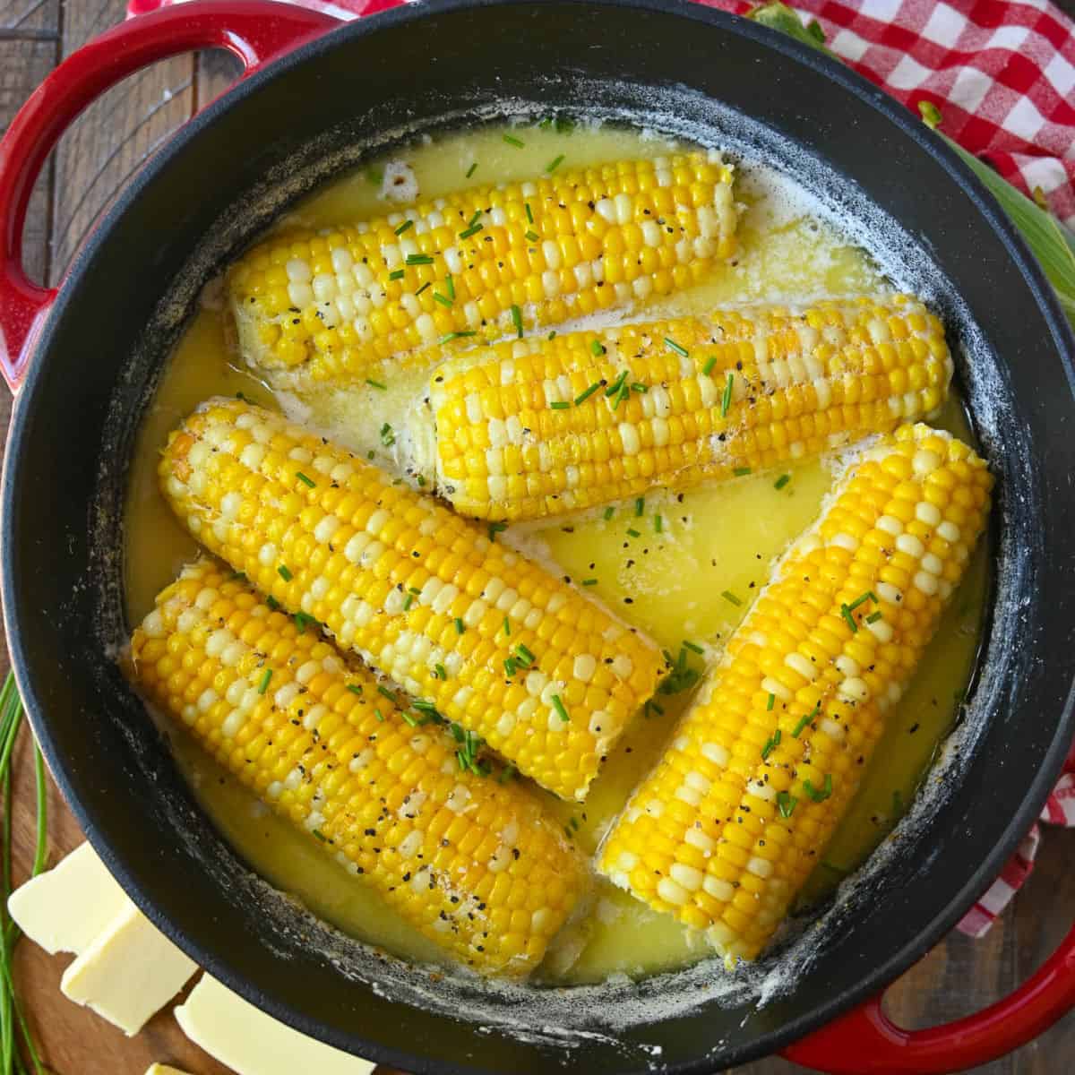 Hervir el maíz fresco de verano en el baño de leche y mantequilla le da un sabor dulce y la adición de azúcar realza aún más esa dulzura natural. Obtenga maíz dulce infundido con un rico y cremoso sabor a mantequilla que a todos les encantará y será su nueva forma favorita. O puedes probar el mio Elote asado o incluso el mío rápido y fácil Maíz al microondas (sin pelar).