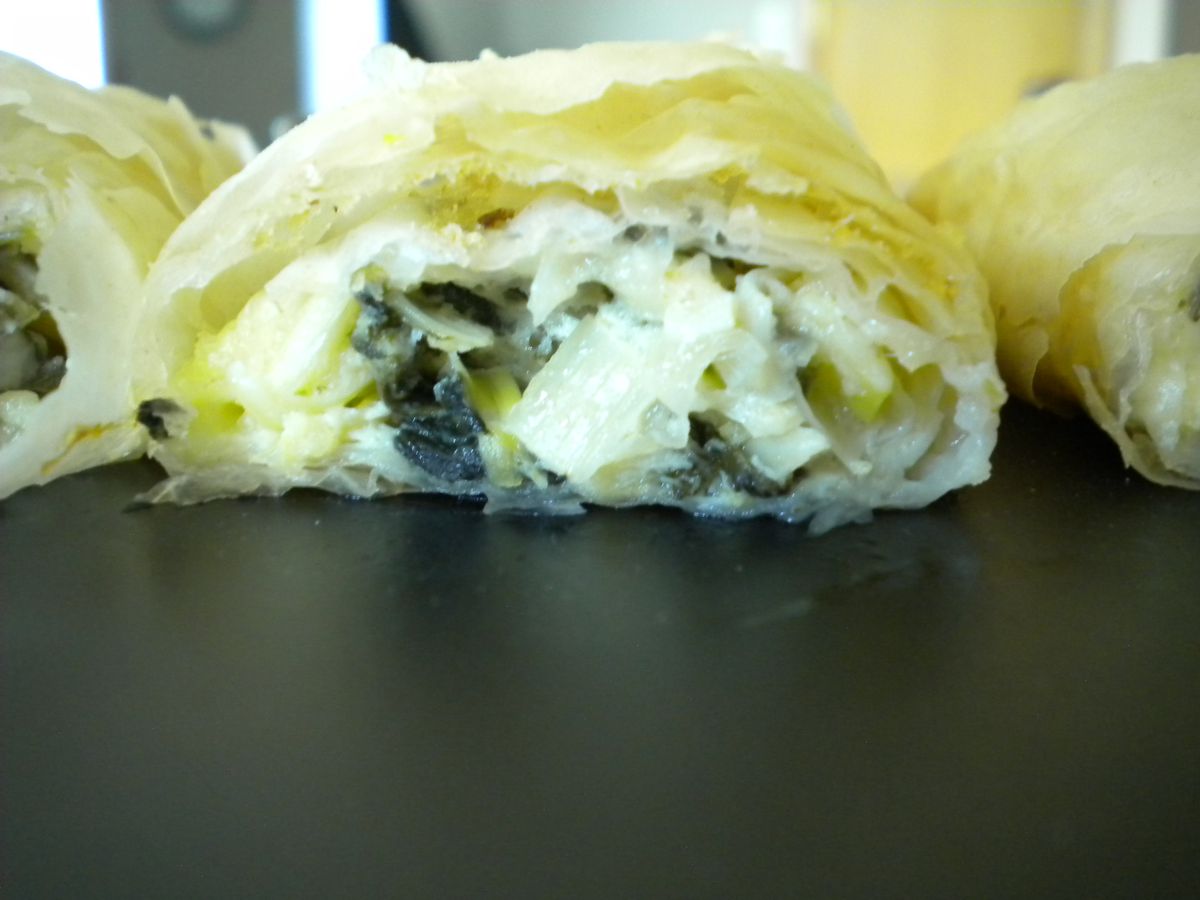 Han pasado casi veinte años desde que toqué una lámina de pasta filo..hace años mamá y yo hicimos rollitos y rollitos de pay de espinacas, rellenos rellenos de puerro, rellenos de manzana y rellenos de carne. Después de olvidar a mis hijas adolescentes, hice unos bollos rellenos de espinacas para las fiestas. Cuando mi padre se volvió a casar, su esposa se hizo cargo de las tareas que me hacían muy feliz. Pero decidí que esta era la semana perfecta para sumergirme de nuevo y ver si todavía podía tener éxito haciendo estos pasteles que los búlgaros llaman banitsa. Decidí combinar todos mis sabores favoritos para este y luego agregué cebolletas, puerros y espinacas. ¡Realmente creo que mi mamá estaría muy feliz con los resultados! NOTA: Veo estas hojas de pasta escritas por todas partes – filo, filo, filo… esta vez mi paquete estaba marcado como filo (¡vamos!) —Inpatskitchen