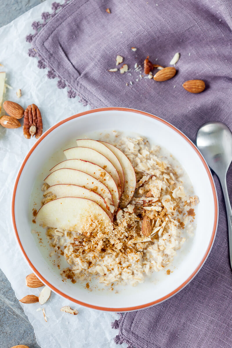 ¡Esta deliciosa y saludable papilla de azúcar de manzana con avena crujiente de nueces es la manera perfecta de comenzar un día ajetreado!