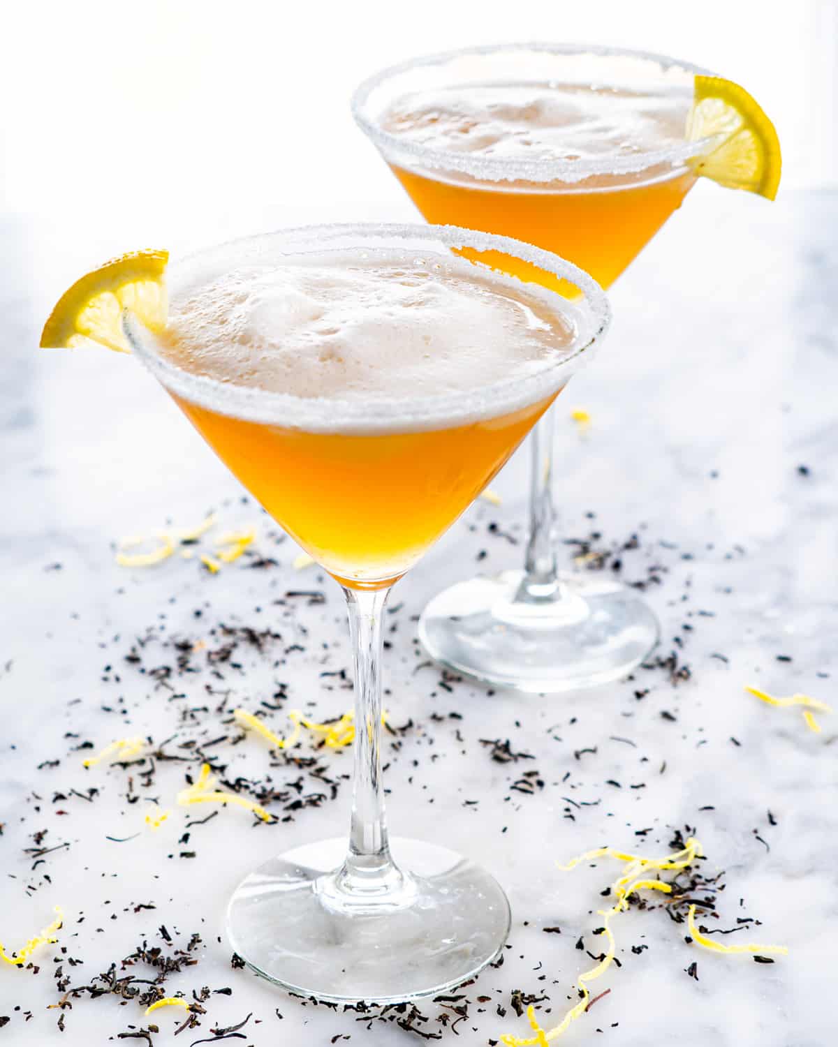 ES martini de earl grey Te hará sentir como si estuvieras sentado en un elegante bar de cócteles en la comodidad de tu propia casa. Impresione a sus invitados con un postre líquido o incluso disfrute al final de un largo día. Hecho con ginebra, jugo de limón fresco y, por supuesto, té Earl Grey.