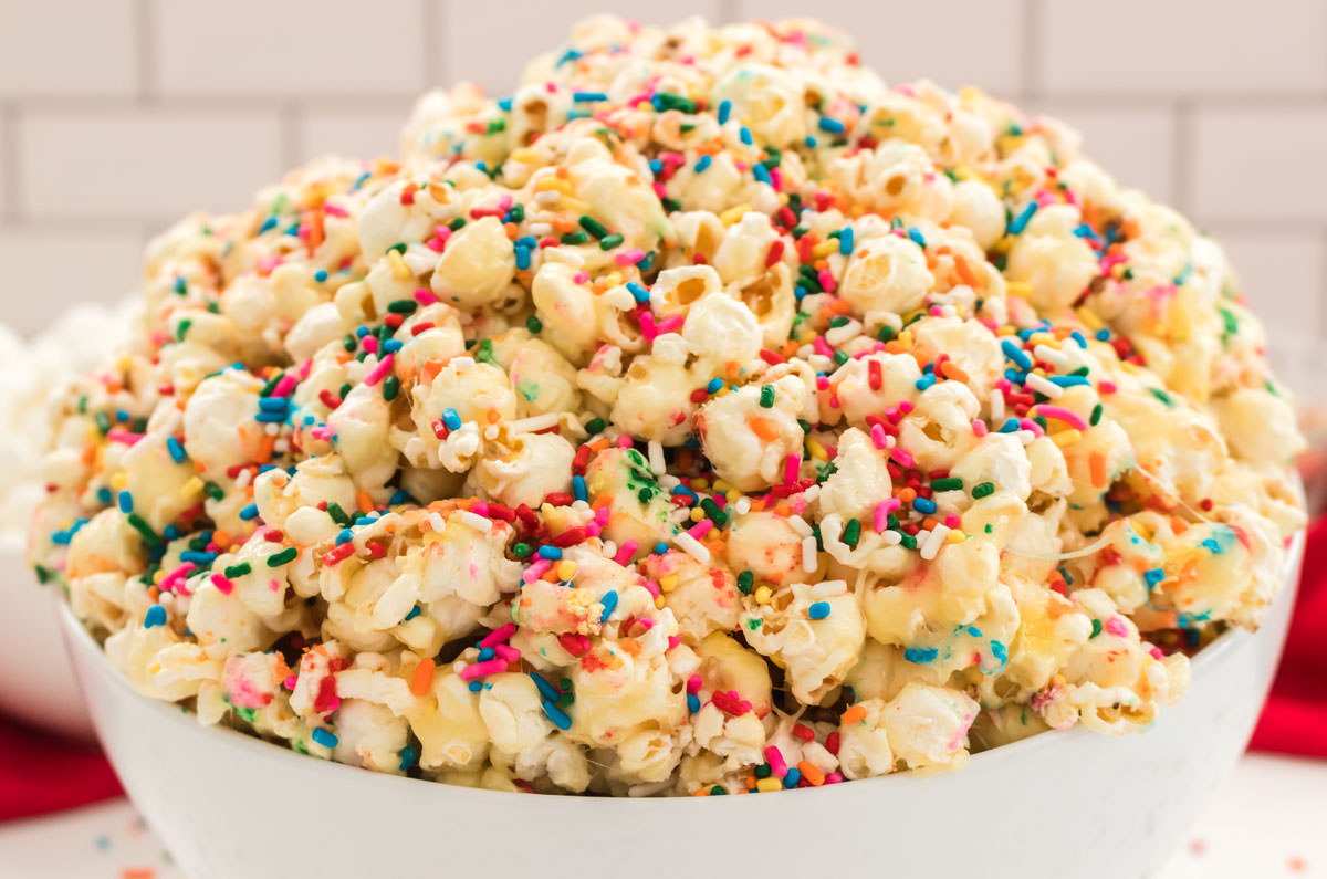 Tomamos el sabor de un pastel de cumpleaños clásico, lo mezclamos con nuestra deliciosa receta de palomitas de maíz dulces y saladas, y creamos una nueva receta de palomitas de maíz para rebozar que es una celebración por derecho propio. Sería una excelente adición a la mesa de postres en su próxima fiesta o como un regalo especial para una noche de cine familiar. ¡Toma algunos azúcares y hagamos un lote!