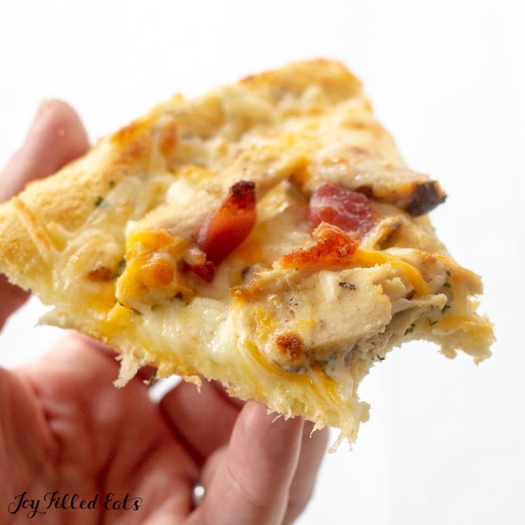 Lo que me encanta de esta masa de pizza de harina de coco es que te mantiene satisfecho sin hacerte sentir demasiado pesado. Es agradable comer unos pedazos de pizza y sentirse lleno, satisfecho y feliz de haberlo hecho. ¡Tiene solo 3 carbohidratos netos por porción!