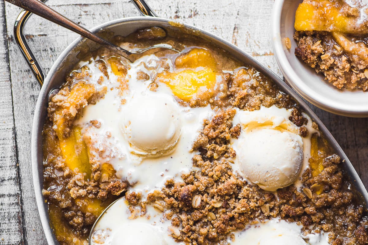 Agregué un poco de sabor a esta personalidad crujiente para que se destaque en las recetas del mar de durazno que estamos haciendo este mes. Las especias que normalmente se reservan para cocinar en otoño e invierno funcionan muy bien con las bayas, especialmente con los duraznos.