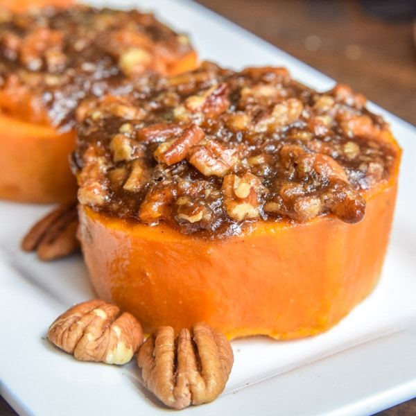 La cazuela de camote es un favorito de la familia y no sería el Día de Acción de Gracias si no estuviera en el menú. Por lo general, se hace en una sartén, pero para arreglar un poco las cosas este año estoy haciendo una mini cazuela de camote. Cada aro de camote se rellena con puré de camote endulzado con azúcar morena, canela y jugo de naranja y cubierto con una mezcla de azúcar morena, canela y salsa de nueces. También puede agregar malvaviscos si lo desea, ¡personalmente creo que son la mejor parte!