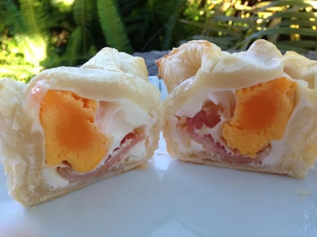Cubra cuidadosamente los moldes para muffins con los cuadrados de hojaldre. Divida el tocino cocido de manera uniforme sobre los pasteles.