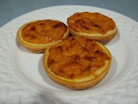 Agregue la mezcla combinada de tocino de calabaza, queso, huevo, leche y nuez moscada. Cuchara en cajas de pastelería.