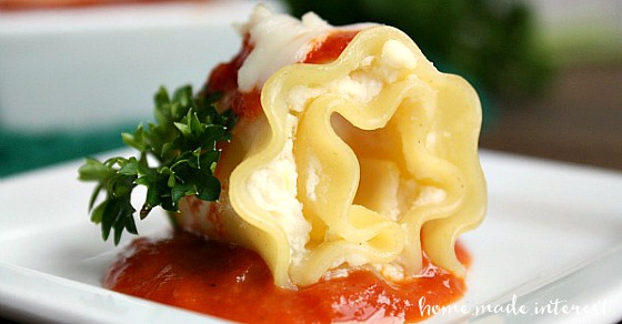 Aquellos mini rollos de lasaña se rellenan con ricota de limón y se sazonan con salsa de tomate fresco.