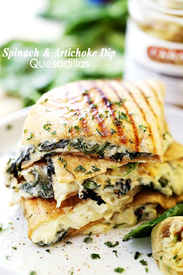 Las quesadillas de espinacas y alcachofas son deliciosas! Cada quesadilla está rellena con una rica y ligera salsa de espinacas y alcachofas. ¡Se convertirá rápidamente en su nueva receta de quesadilla favorita!