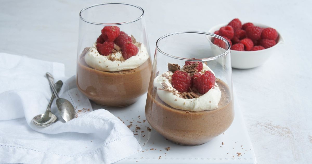 Vierta el chocolate combinado, la crema y las claras de huevo en el tazón. Pon el resto de la nata encima.