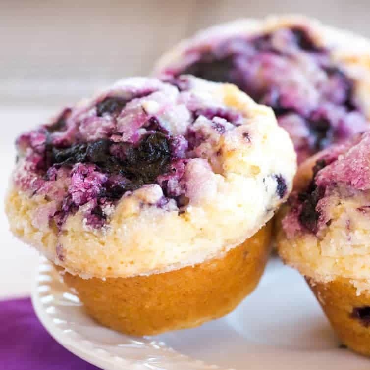 Independientemente de ese paso en falso, estos son los muffins de arándanos MÁS INCREÍBLES: tantas explosiones de sabor y glaseado de azúcar hacen que cada bocado quede crujiente. ¡Esta es mi receta favorita de muffins de arándanos en el futuro y planeo mantener mi congelador abastecido!