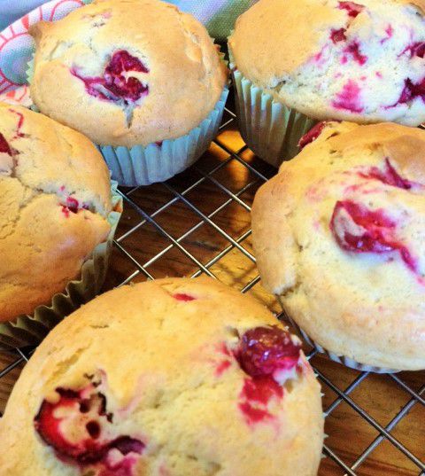 Siempre parece haber media bolsa de arándanos frescos en mi congelador, especialmente antes y después del Día de Acción de Gracias. Y las almendras y la crema agria están siempre a mano. De ahí estos deliciosos muffins. —Amisarah