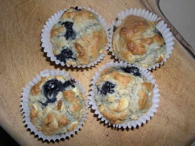 Añadir la nata, el huevo y el aceite. Doble suavemente los arándanos.