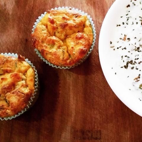 Precalentar el horno a 180°C. Engrasa un molde para muffins de 12 hoyos o fórralo con cajas de papel.