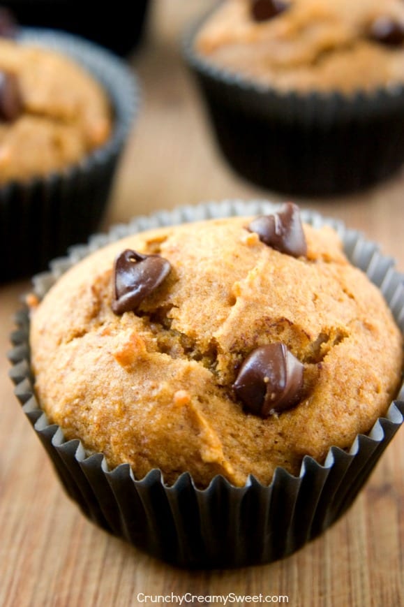 Muffins De Calabaza Con Chispas De Chocolate – ¡estos muffins delgados son suaves y esponjosos y están llenos de calabaza, especias y chocolate! ¡Muy sabroso!