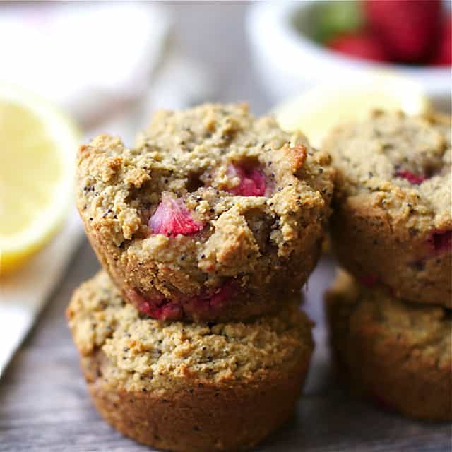 ¡Te encantarán estos deliciosos muffins húmedos de fresa, limón y semillas de amapola que son los nuevos favoritos en nuestra casa! Azúcar refinada y sin cereales, Paleo, pero nadie se dará cuenta. ¡Estas magdalenas perfectas son un delicioso refrigerio o desayuno en una mañana ocupada!