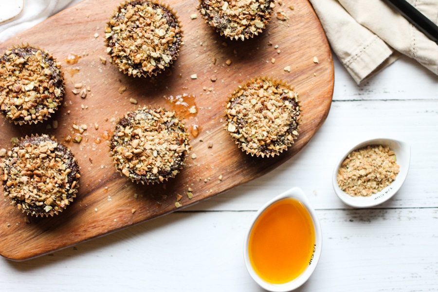Muffins de chocolate y pan de plátano con semillas tostadas y glaseado de miel: ¡estos muffins sin gluten y sin granos son paleo, sin huevo, sin nueces y deliciosos!