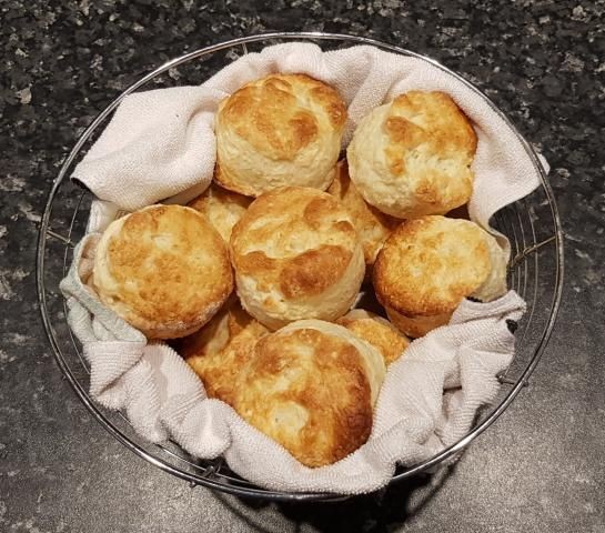 Haz un agujero en el centro. Agregue el suero de leche, revolviendo con un cuchillo sin filo, hasta que la masa esté casi junta.