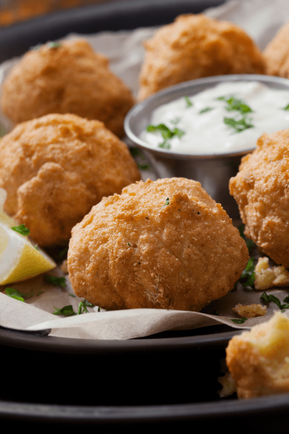 Debe servir cachorros tranquilos lo suficientemente calientes como para quemarse las yemas de los dedos (es broma, tenga cuidado). Las bolas de harina de maíz se deben escurrir en un plato forrado con toallas de papel después de sacarlas del aceite caliente y que queden crujientes. Después de eso, puedes agregar un poco a tu plato o agregarlos a una canasta que colocarás en el centro de la mesa.
