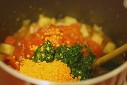 – Añadir los tomates troceados y saltear otros 3-4 minutos y cuando esté cocido, añadir el dal a presión y llevar a ebullición.
