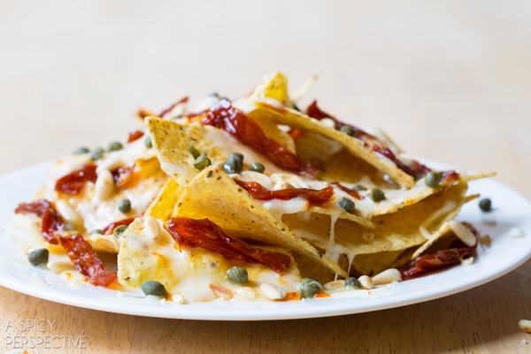Entonces, la historia detrás de estos nachos es que siempre tengo en mi despensa pimientos secos, alcaparras y piñones, porque me gusta usarlos en recetas como esta…