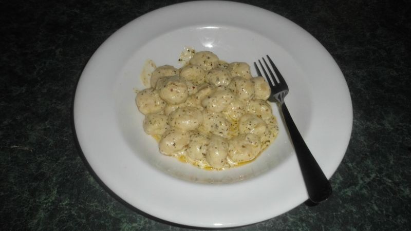 Cuece los ñoquis en agua con sal. Las albóndigas crecen cuando se cocinan. Escurrir y reservar.