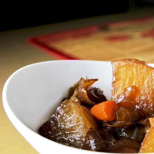Cuando estoy en Japón en otoño o invierno, a menudo voy a una tienda de comestibles a comprar Oden. El oden es un plato muy sencillo que consiste en verduras, huevos, “konyaku”, cocidos en caldo ligero de soja o kombu. Agregué un poco de ajo y jengibre al mío para darle un toque extra.