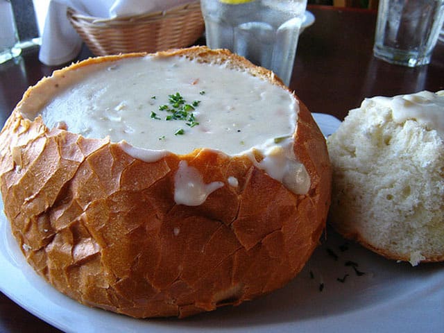 (Ojalá tuviera una foto de la sopa de almejas en un panecillo que se ve bien, pero todo lo que tengo son tazones de vidrio blancos, que no son los mejores para una sopa blanca cremosa, escondidos en el estante. Supongo que tendré que hacerlo otra vez!)