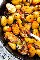 Para evitar romper una olla separada para cocinar papas, use la sartén para cocinar al vapor y luego dorar. Cubrir la sartén crea vapor y las patatas se cocinan, ablandando la carne en unos 10 minutos. Para obtener un buen color en las verduras, se saltean durante unos minutos antes de servir para obtener una corteza ligeramente crujiente.