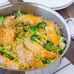 Sartén de pollo con cheddar, brócoli y arroz {sin gluten}