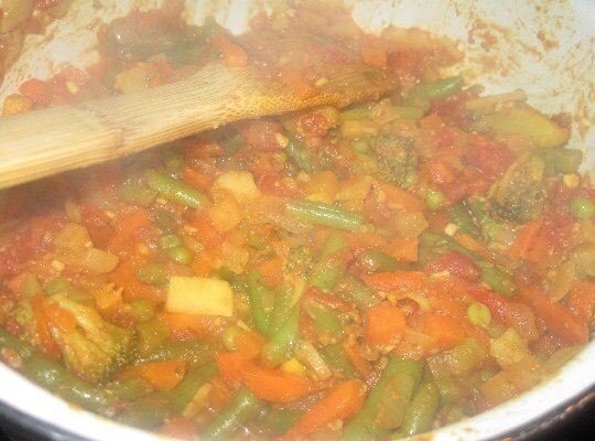 Agregue las verduras y mezcle hasta que estén cocidas.