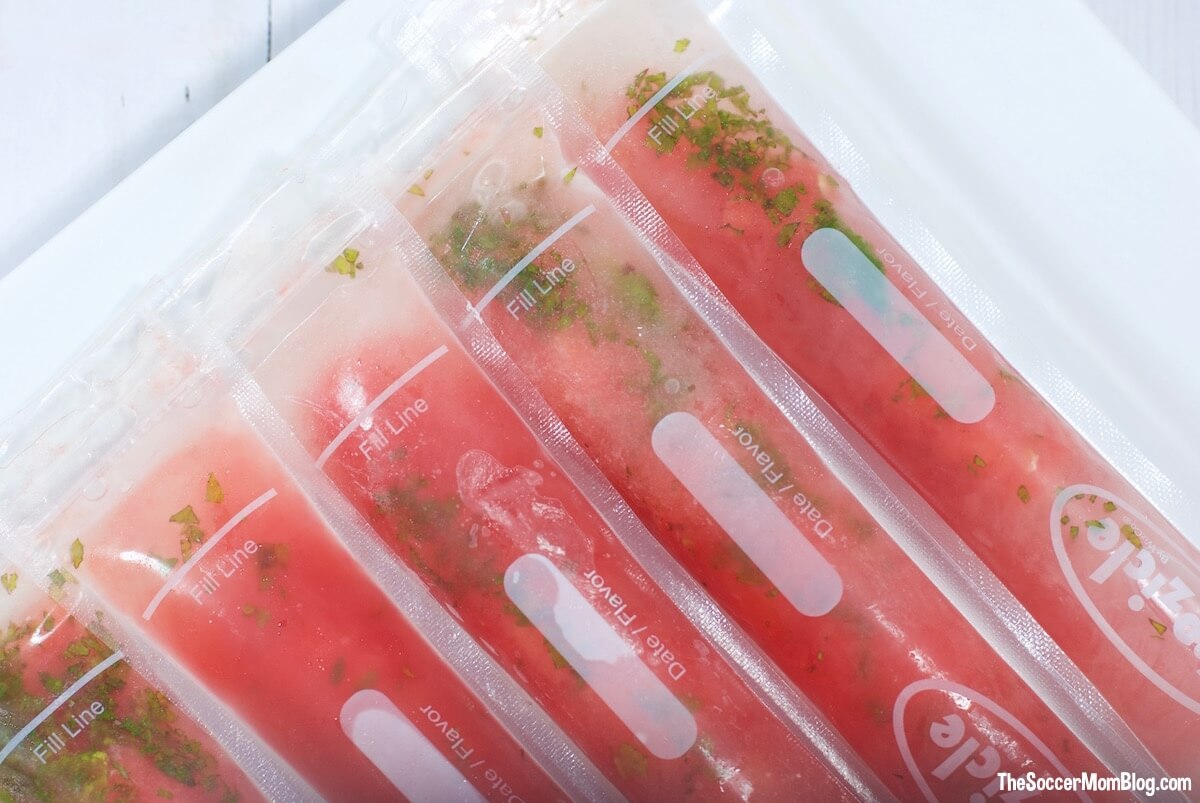 Obtenga una copia imprimible gratuita de nuestra receta Freezer Pops Watermelon Mojito aquí: