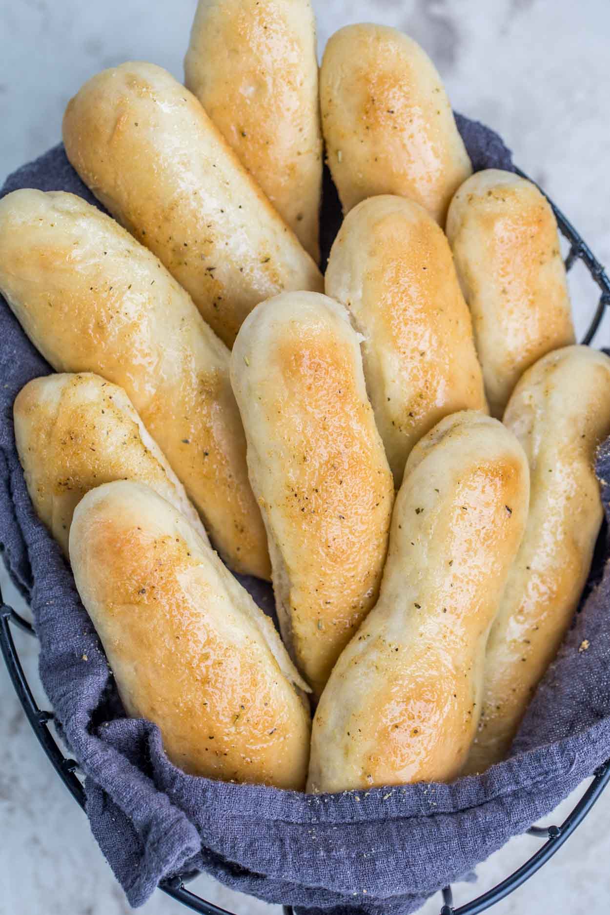 ¡Palitos de pan esponjosos con una costra de mantequilla de ajo que son absolutamente irresistibles!