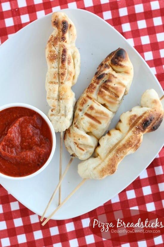 Sirva con una guarnición de marinara caliente para mojar los palitos de pizza.