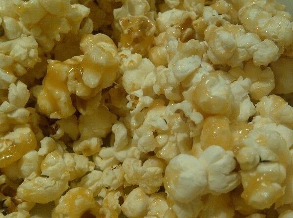 Retire del fuego y deje que las burbujas disminuyan. Vierta sobre las palomitas de maíz.