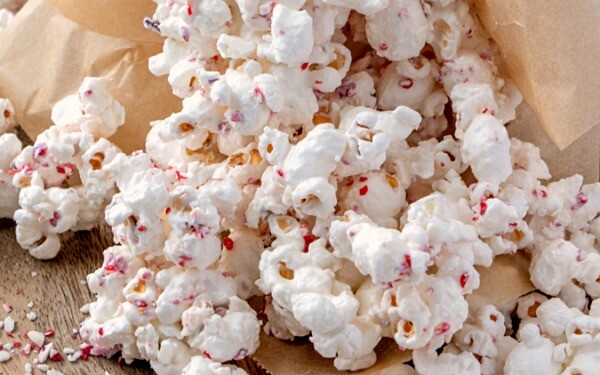 Tengo la manera perfecta de consumir esos últimos bastones de caramelo que quedan en la casa: ¡Palomitas de maíz con menta y chocolate blanco!