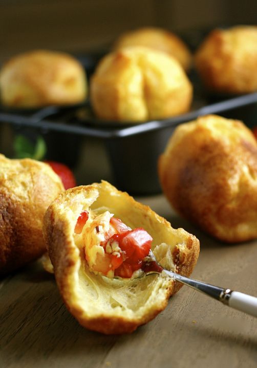 Popovers esponjosos de color marrón dorado untados con mantequilla de fresa fresca. —Riley Wolfford