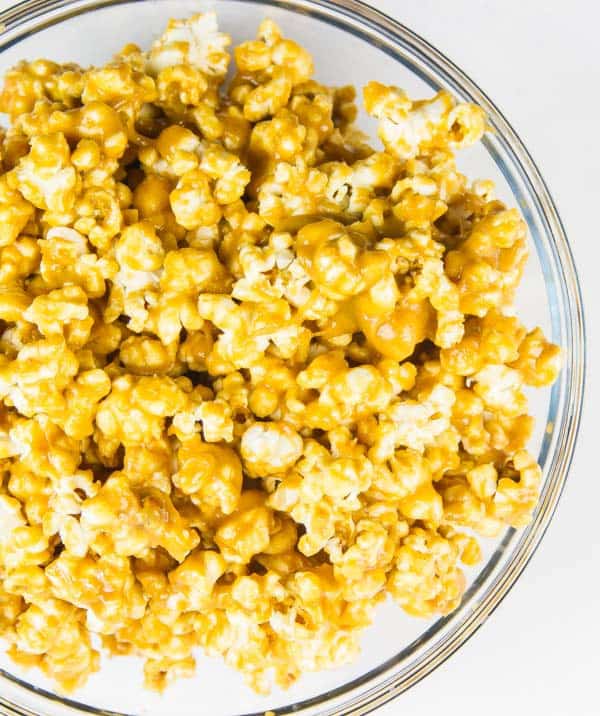 Las palomitas de maíz recién hechas están cubiertas con una dulce capa de mantequilla de maní y arce para obtener unas palomitas de maíz gourmet especiales que le encantarán a su familia.