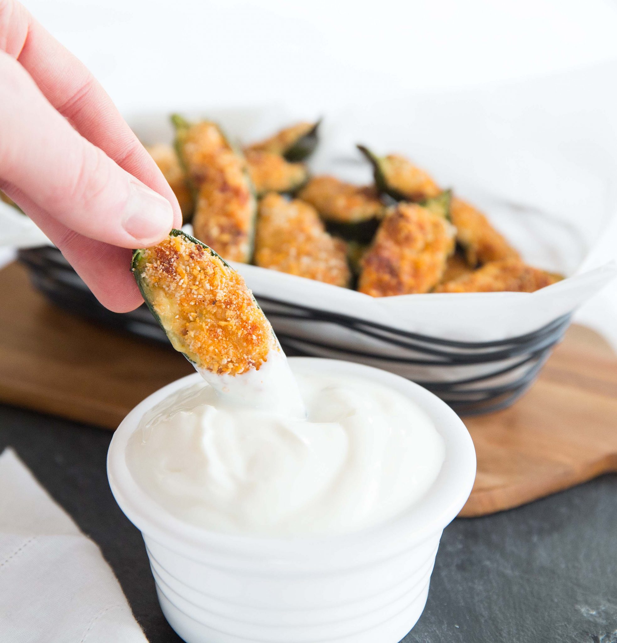 Estos son geniales por sí solos, pero aún mejor con un chapuzón. Para mí, generalmente voy con una crema agria simple para aliviar la patada de especias. Sin embargo, estos también son sorprendentes:
