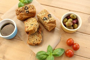 Engrase un molde para pan, luego vierta la mezcla en el molde (puede agregar algunas aceitunas en rodajas o queso encima de la mezcla si lo desea) y hornee durante 30-35 minutos.