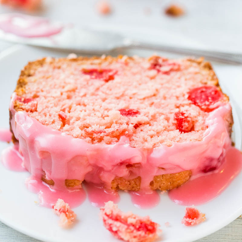 Pan de Cereza Suave con Cobertura de Cereza y Almendras – ¡Una receta FÁCIL de pan rápido que es perfecta para el Día de San Valentín, Pascua o el Día de la Madre! ¡Porque nunca se puede tener demasiado rosa!