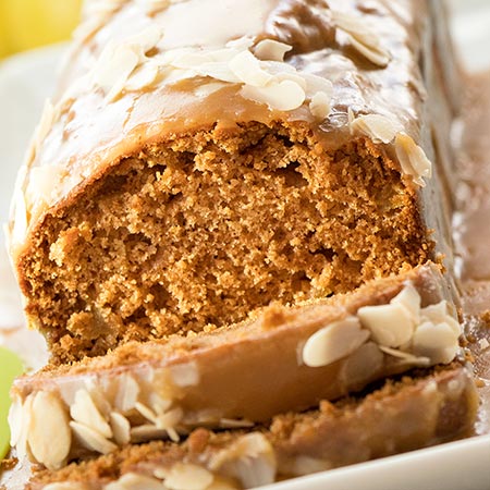 - Vierta la cobertura de caramelo sobre el pan de manzana y refrigere hasta que esté listo. Decorar con almendras tostadas rebanadas. ¡Rebana y sirve a temperatura ambiente!