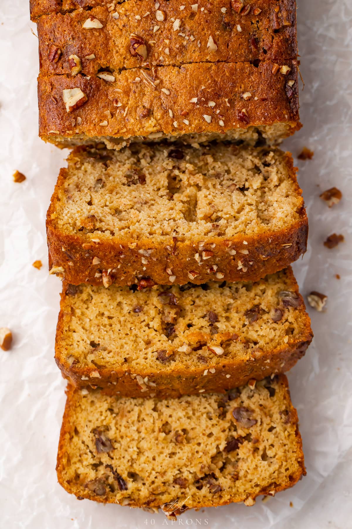 - Mmm. Este pan es GENIAL. Revisé un poco las fotos para esta, lo admito, pero eso es porque NECESITO que lo entiendas. ¡Qué increíblemente HÚMEDO y MAGNÍFICO es este pan de plátano cetogénico!