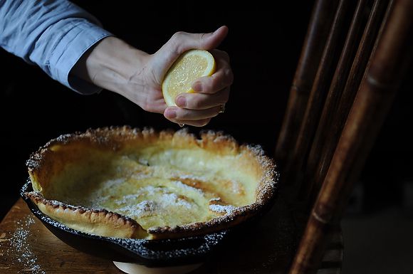 Esta receta proviene de The Essential New York Times Cookbook y apareció en el Times en 1966. Cuarenta años después, los lectores siguen haciendo panqueques con no menos felicidad. Lo que mantiene a los cocineros fieles a una receta suele ser una confluencia de facilidad y sorpresa. El panqueque de Eyre tiene ambos. Se mezcla una masa de harina, leche, huevos y nuez moscada, luego se vierte en una sartén caliente llena de mantequilla y se cuece. Alguien confundido? No lo creo. La sorpresa llega al final, cuando abres la puerta del horno y encuentras una tortita esponjosa y tostada que se ve absolutamente deliciosa. Pronto se desmorona cuando lo rocías con azúcar glas y jugo de limón, lo cortas y lo devoras. Es agridulce, no del todo un panqueque y no del todo una crepe. Pero adorable no obstante.
