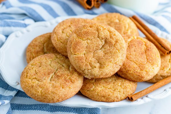 Las galletas Snickerdoodles recuerdan a una galleta de azúcar suave y masticable, ¡pero un poco más atrevidas con la capa de azúcar y canela!