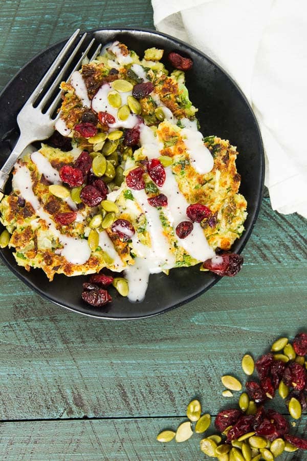 Me encantan las donas. Los buenos tienen un exterior crujiente que mantiene bien su forma, y también tienen muchas verduras. ¡Estos panqueques de repollo y coles de Bruselas se ajustan perfectamente a esa factura!
