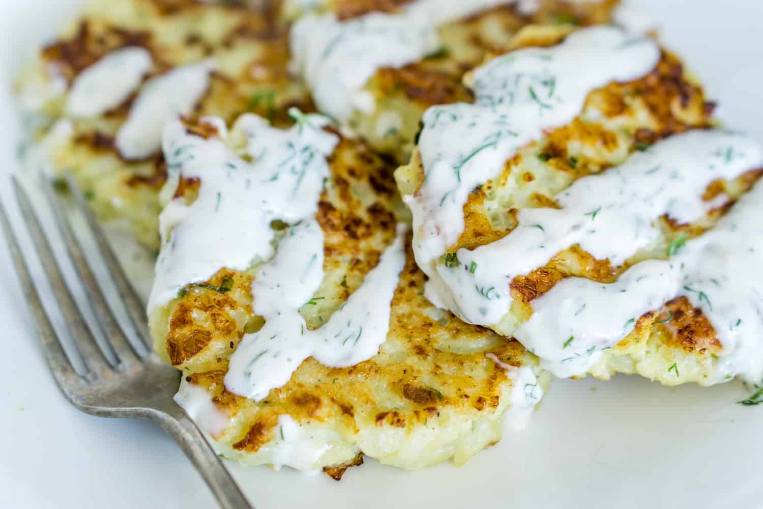 Panqueques de alioli de coliflor y ajo: una receta fácil y saludable de panqueques de coliflor que funciona para el desayuno, el brunch, como guarnición o como merienda.