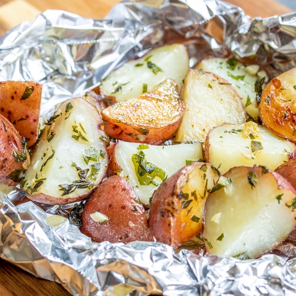 estas fáciles Papas Ajo Paquete De Aluminio Se asan a la parrilla o se hierven con mucho ajo y hierbas para obtener una receta de papa al horno perfectamente tierna y sabrosa.